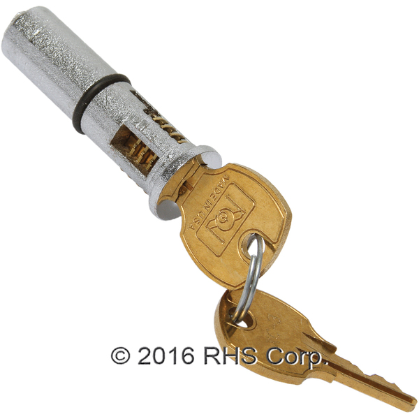 KEY CYLINDER APPROX 2" IN LENGTH WITH ONE GROOVE AROUND CYCLINDER. BRUSHED CHROME FINISHED.