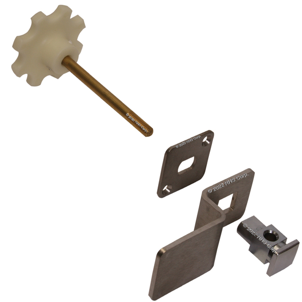Chrome plated die-cast zinc post; stainless steel locking bar with brushed finish; glow in the dark twist-off knob.