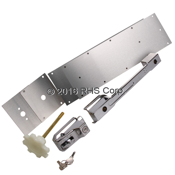 LATCH ASSEMBLY INCLUDES HANDLE, LATCH MECHANISM, SCREWS AND INSIDE RELEASE. LATCH IS KEY LOCKING. KEY IS MARKED KHC102