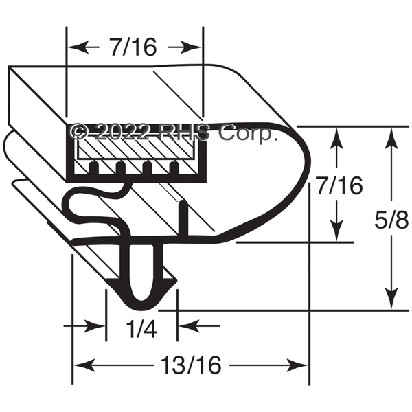 OEM BLACK MAGNETIC AIRCELL GASKET. BLACK, STD PVC, 13/16" WIDTH, 1/4 WIDE HOLLOW DART. MOD: QVR2, SN: 14090361M