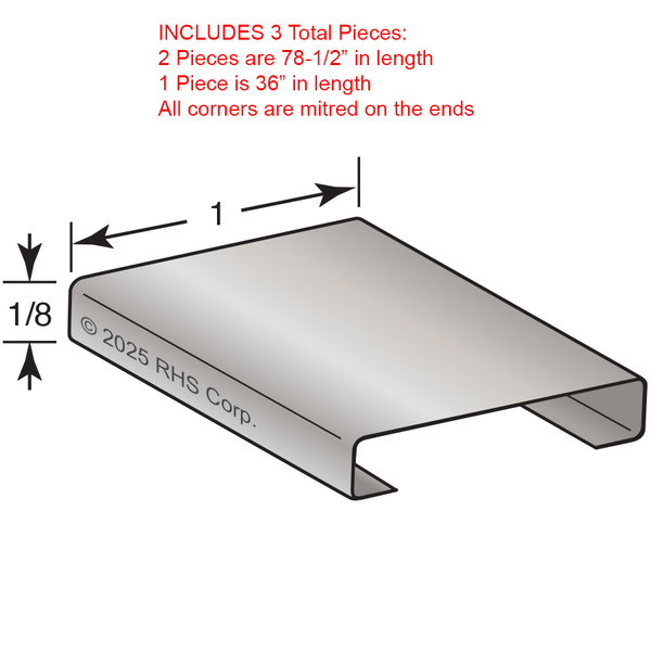 2 PIECES AT 78-1/2" LENGTH, 1 PIECE AT 36" LENGTH WITH ALL CORNERS MITRED ON END.