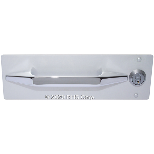 Mounts with 3 bolts on 4" thick door, 30" wide or greater. Latch and handle through-bolt with hidden hardware.