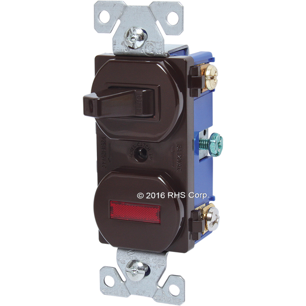 THIS IS THE SAME SWITCH AS NO. 43-095 EXCEPT DARK BROWN COLOR. THIS IS A SINGLE POLE, SINGLE THROW SWITCH WITH NEON INDICATOR LIGHT. USED BY STANLEY KNIGHT AND OTHER MFG'S.